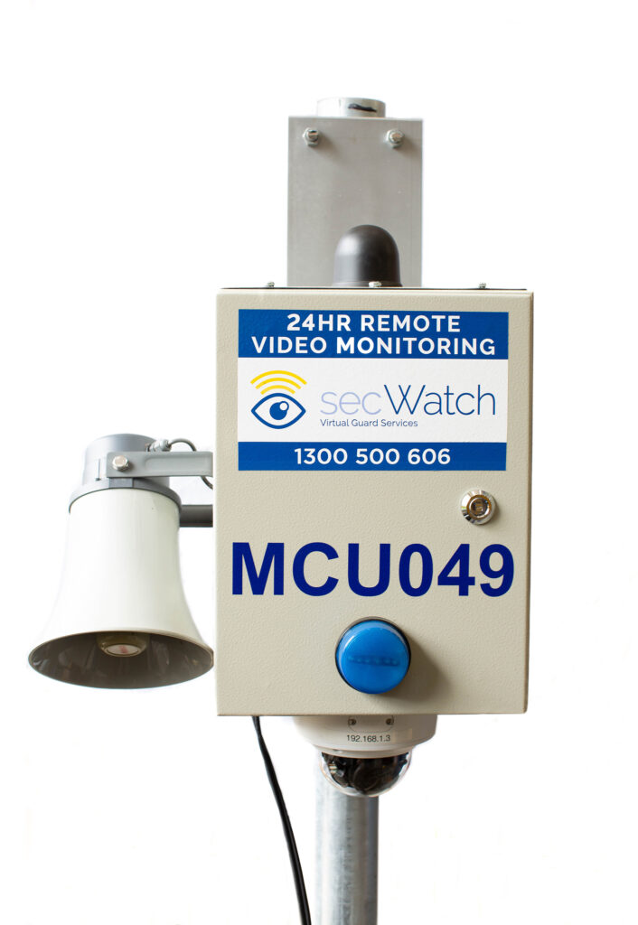 The secWatch MCU is a pole-mounted CCTV unit, purpose-built for quick installation and high visibility. Each unit is assembled in our workshop and installed by our expert technicians, who ensure the cameras are positioned to give maximum coverage of entry points, perimeter areas, and high-risk zones. Using built in camera AI like line crossing and intrusion areas the cameras report back to our security operations centre where a trained operator analyses the situation and can issue a live audio challenge to intruders.